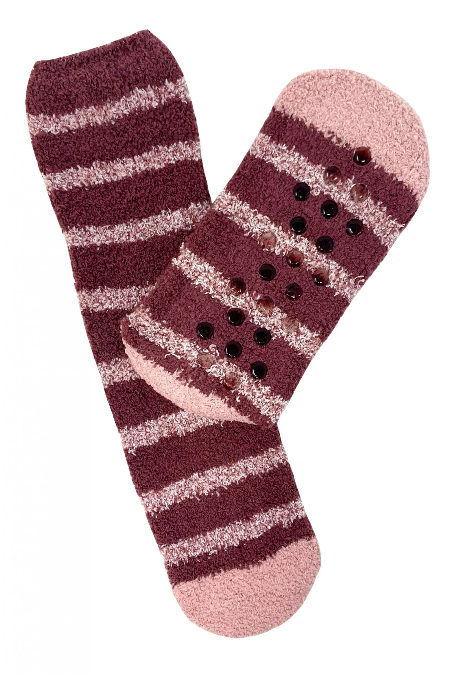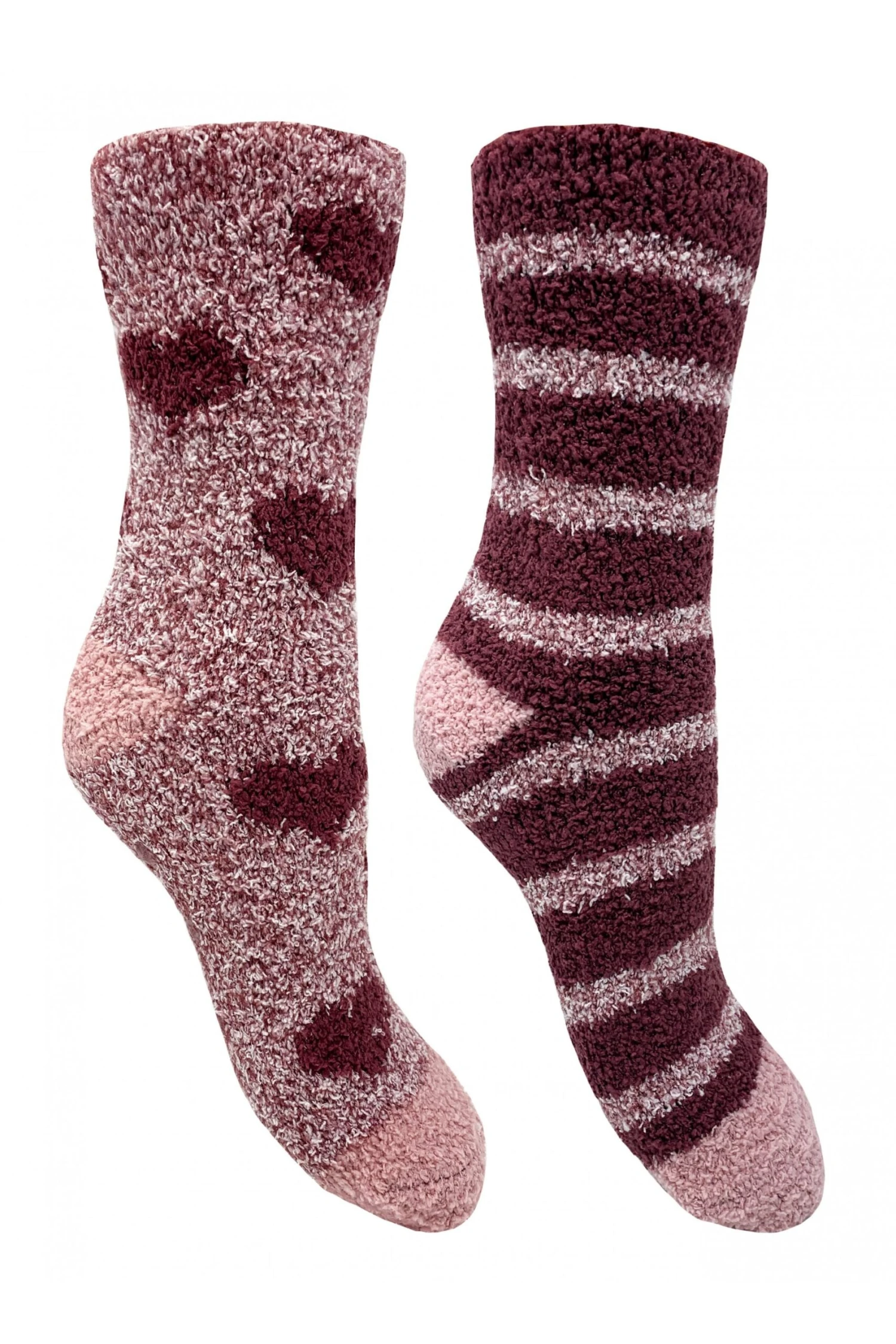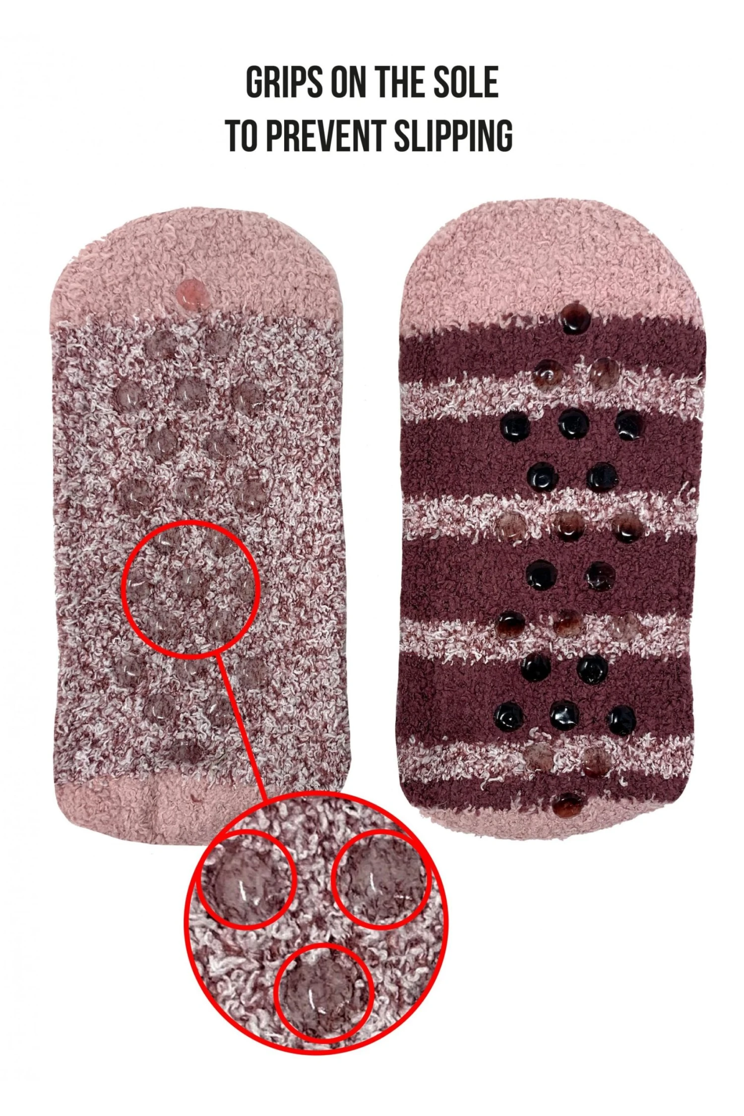 The ultimate indoor/outdoor comfortable sock. These extremely soft pink ladies heart and stripe socks are the perfect cosy sock to keep your feet toasty. The lounge sock comes in a 2 pack with a contemporary stylish knit and can be warn whilst lounging in the comfort of your home or outdoors as a thermal layer in wellies. These gorgeous luxuriously warm cosy fluffy socks are ready giftable, packaged with a ribbon and tag, making it the perfect gift or treat for yourself. The socks have been made from high quality microfibre to give an incredibly soft handle and have an additional cushion layer ensuring your feet are kept warm and comfortable all day. They also feature rubber anti slip grips to the sole to keep you on your feet and ensure you have added grip whilst on tiles and laminate floors.