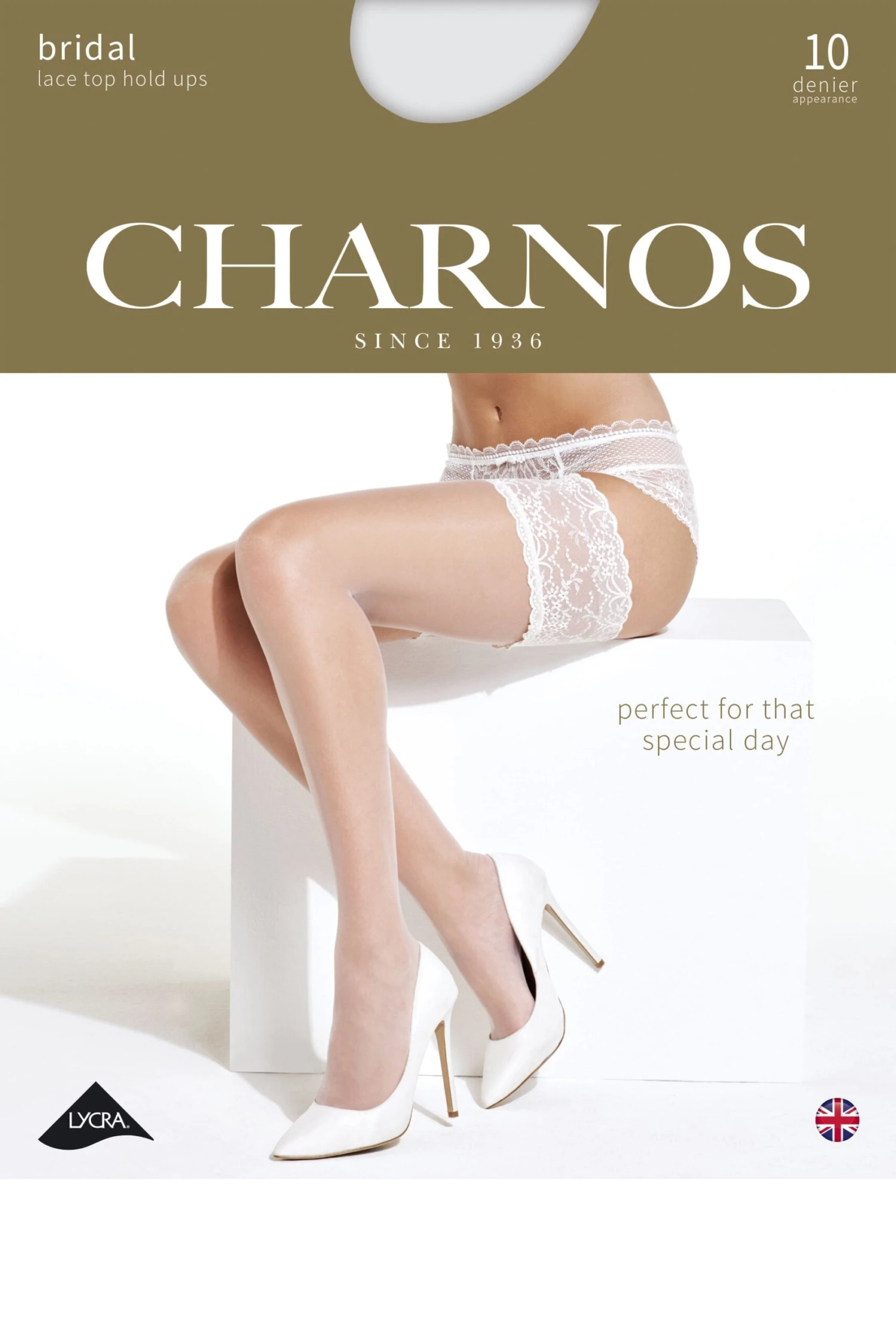 The Charnos Bridal Lace top Hold Ups are part of the Charnos Bridal collection. Definitely our favourite wedding brand in the shop. Available in champagne or ivory, both with a wide lace ivory top. The ultimate finishing touch for all brides for that perfect day.