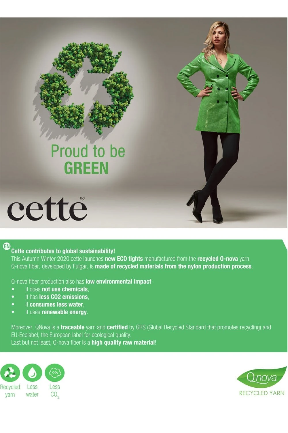 Opaque eco-friendly pantyhose, made from recycled Q-NOVA yarn. 3D technology for excellent fit, softness and resistance. Matt finish, all-through, with cotton gusset & flat seams.Q-nova fiber production also has low environmental impact: it does not use chemicals, has less CO2 emissions, consumes less water & uses renewable energy.