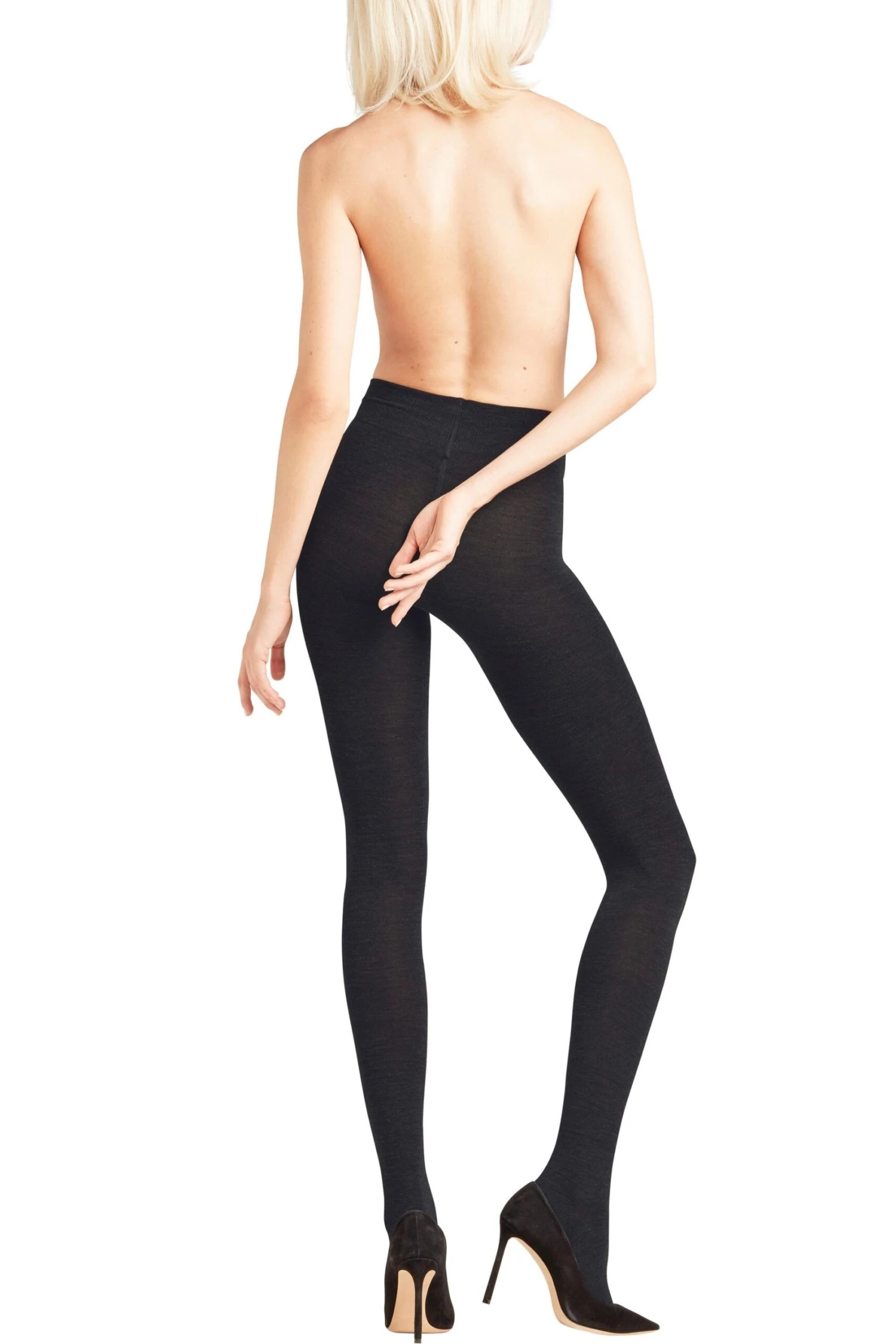 Soft Merino Wool Tights by Falke. Luxurious Merino wool tights from premium hosiery brand Falke. These tights are the ultimate in warm winter comfort. More than half of the composition is Virgin Merino wool, while the majority of the remainder is cotton. This combination creates perfection – the soft, skin loving cotton lines the inside of the tights, while Merino wool warms from outside. A reinforced heel and toe make this an ideal pair for teaming with boots, and the comfort top provides full movement without digging in.