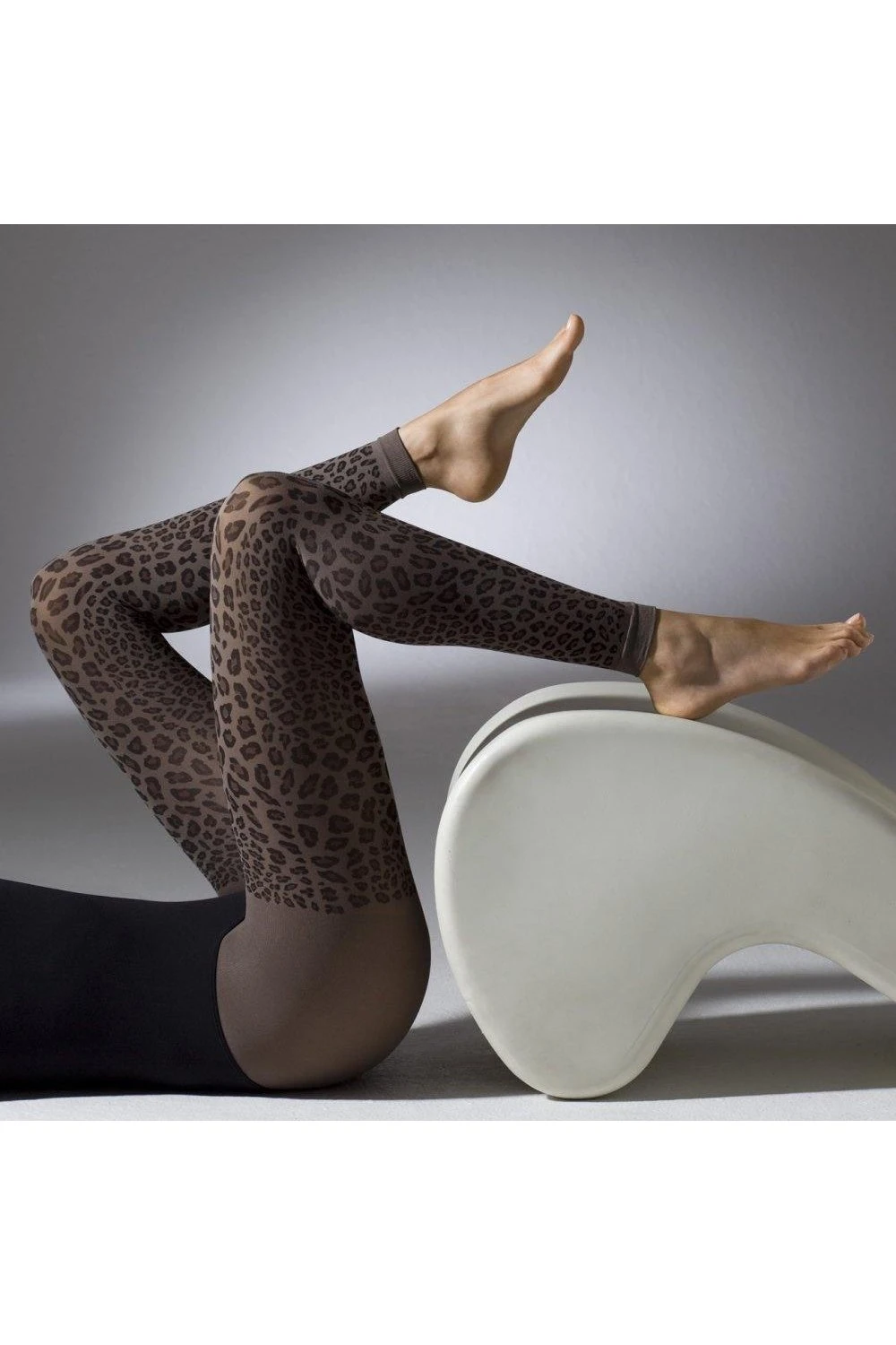 Leopard Print Footless Tights from Gipsy. Leopard print is always fun to wear and these are no exception. These have a plain cuff and boxer panty part.