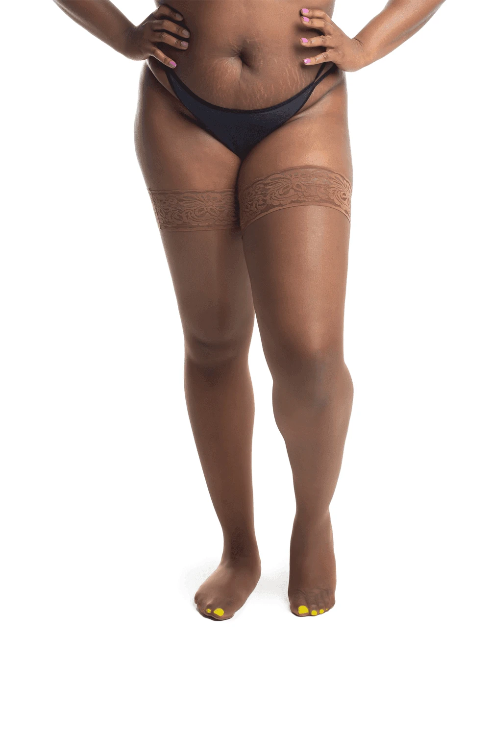 New brand Brown Skin Essentials are a lifestyle brand for people of colour. Brown Skin Essentials aim to provide the perfect nude for every skin tone. The luxury 20 denier hold ups are suitable for all shades of skin tones. They are sheer with a subtle gloss finish, perfectly highlighting your natural skin tone instead of covering it. They are ideal for covering minor leg imperfections, distracting from the look of blemishes, scars or indentation. They are available in 6 colours and 4 sizes ranging from XS/Small to 3XL/4XL.