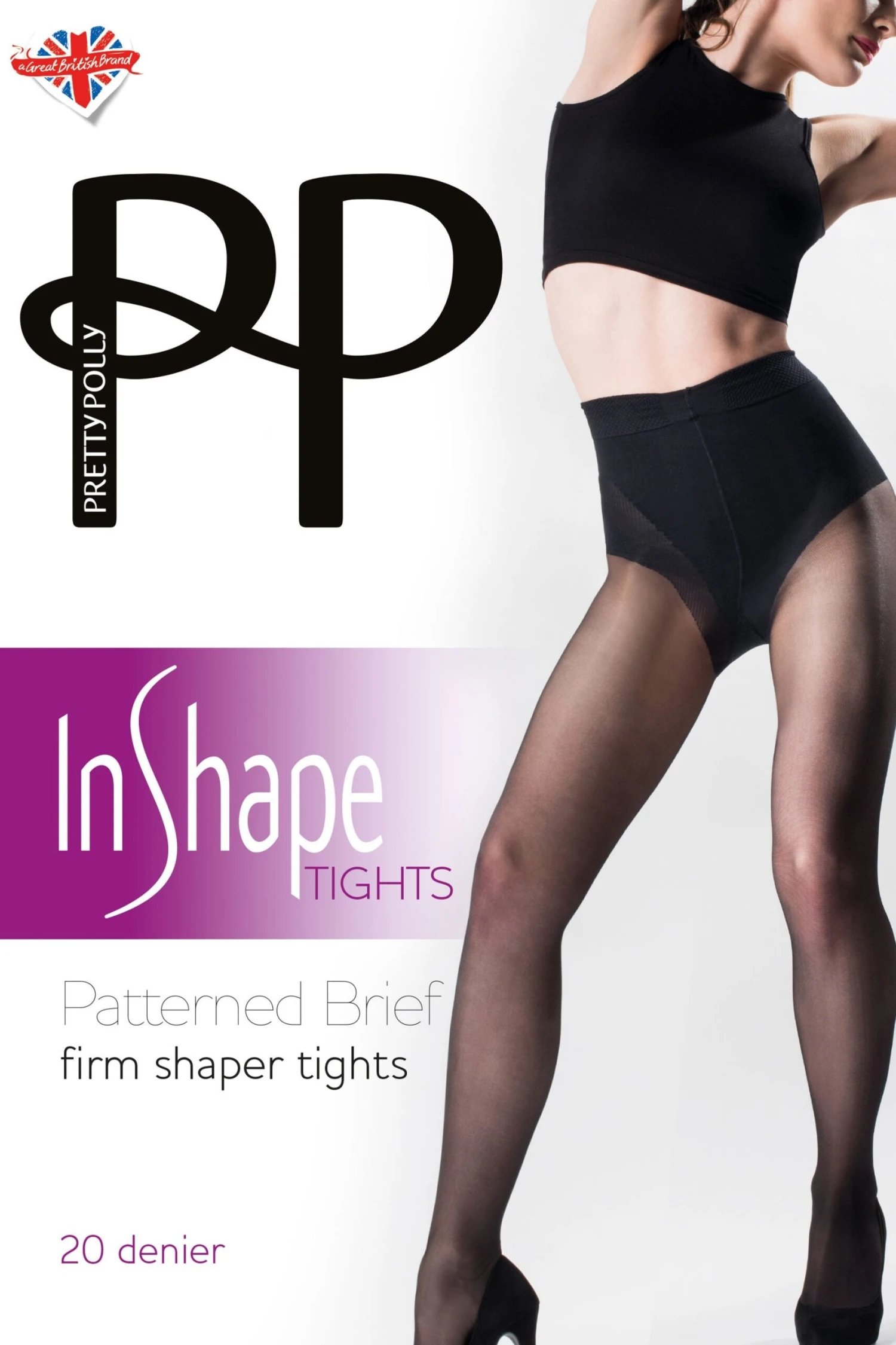 Part of the new Pretty Polly InShape Tights. Shaping tights which look great and help to enhance your silhouette. The range has different levels of control and attractive briefs. This style has firm control with a high leg brief which has a dot design tummy panel, and ribbing effect in the pant for extra shaping. The 20 denier leg is sheer yet strong.