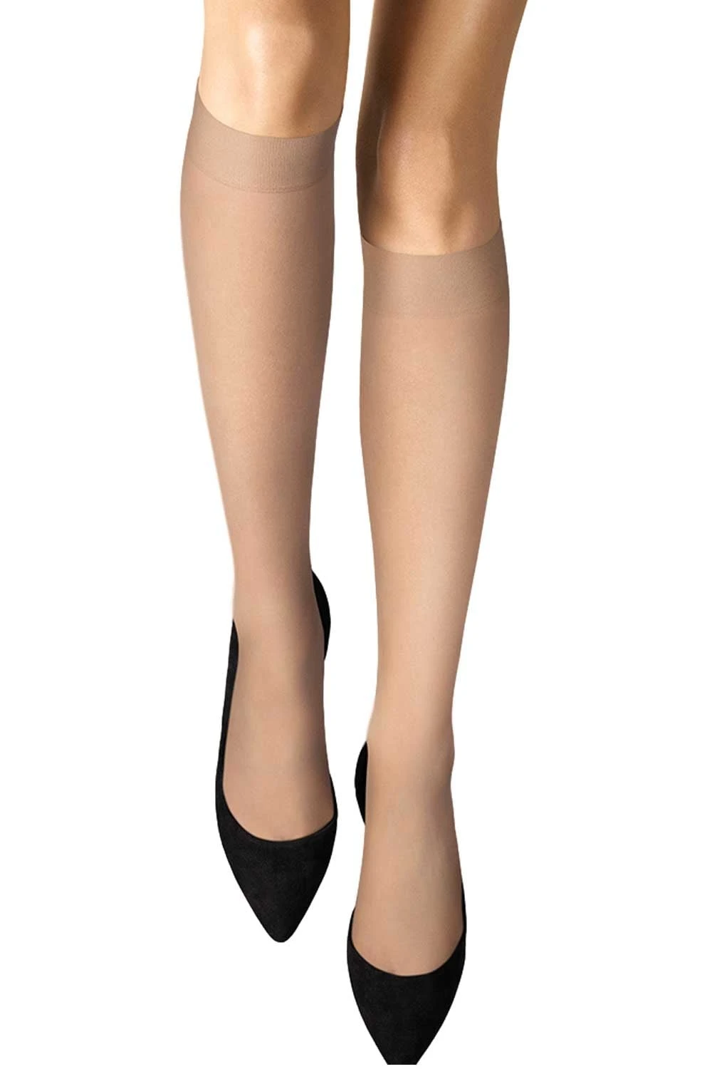 Individual 10 Knee High Socks from Wolford. These matt transparent knee highs are the perfect discreet addition to a outfit. They feel as light as a feather with an unobtrusive effect and are ideal for a flawlessly well-manicured appearance.